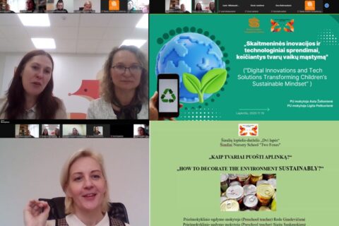 Lapkričio 19 d. lopšelis-darželis „Dvi lapės“ kartu su Šiaulių švietimo kompetencijų centru organizavo tarptautinę konferenciją „On the Way to Sustainability – Tvarumo link“. Besidalindami idėjomis, kurias integruojame į savo įstaigų veiklas pamatėme, kad „tvarūs ritualai tampa kasdiene dalimi“ (cit. Iš Panevežio l/d „Pasaka“ pedagogių pranešimo). Konferenciją moderavo priešmokyklinio ugdymo mokytojos Asta Želionienė ir Ligita Petkuvienė.