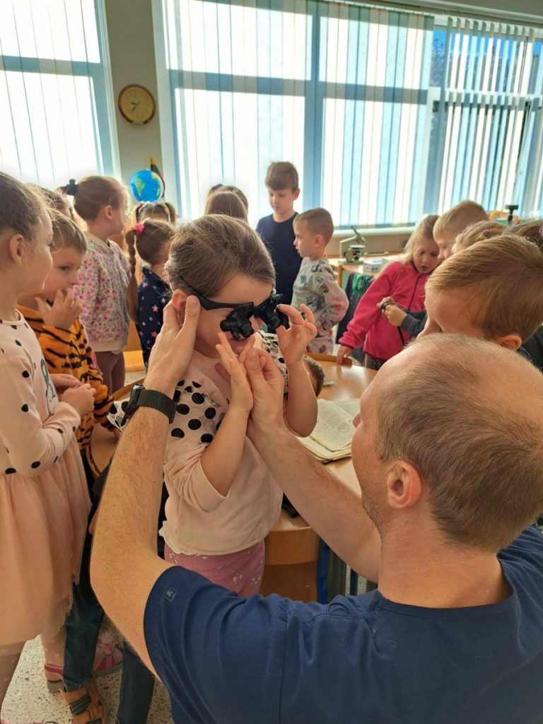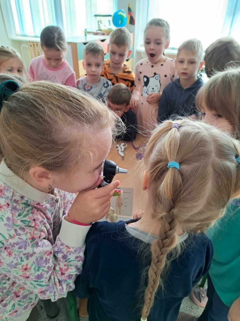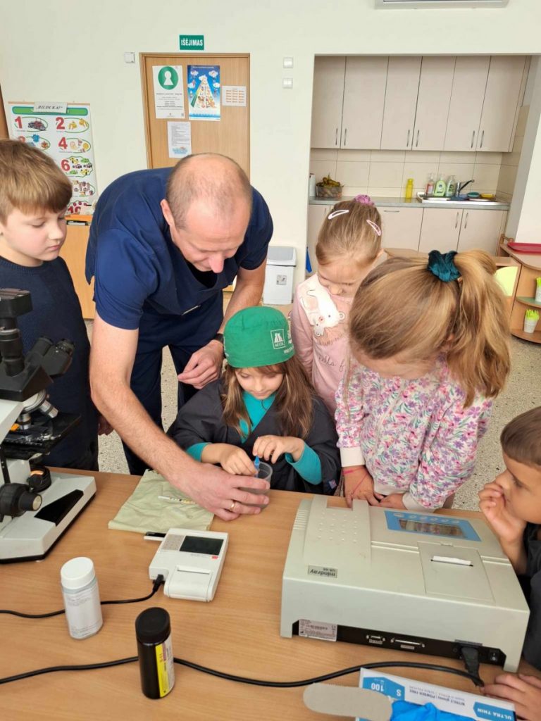 Rugsėjo 30 dieną priešmokyklinio ugdymo „Bildukų“ grupėje apsilankė Ado tėtis Nerijus Vaitkus, kuris pristatė savo, veterinarijos gydytojo profesiją. Vaikai susipažino su gyvūnų gydymo reikmenimis, palygino kuo skiriasi senesni ir naujesni prietaisai. Pastarieji vis lengvėja ir mažėja. Nuostabiausia tai, kad buvo galima patiems viską išbandyti: stetoskopu pasiklausyti draugo širdelės, specialiu prietaisu patikrinti ausis, užsidėti „stebuklingus“ akinius, per kuriuos gali pamatyti net pačius mažiausius savo nago vingius. Kai kurie Bildukai netgi „pasimatavo“ veterinarijos gydytojo profesiją, patys atliko tyrimus, stebėjo rezultatus. Vaikai liko sužavėti Ado tėčio pasakojimais, o ir patiems buvo smagu papasakoti apie namuose turimus mažuosius draugus. Išsiaiškinome, kad norint tapti veterinarijos gydytoju, reikalingos tokios savybės, kaip darbštumas, atsakingumas, kantrybė, ir svarbiausia didžiulė meilė gyvūnams. Labai džiaugiamės tėvelių iniciatyva įsitraukti į ugdymo procesą įvairias metodais ir tikimės dar daugiau tokių puikių edukacijų.