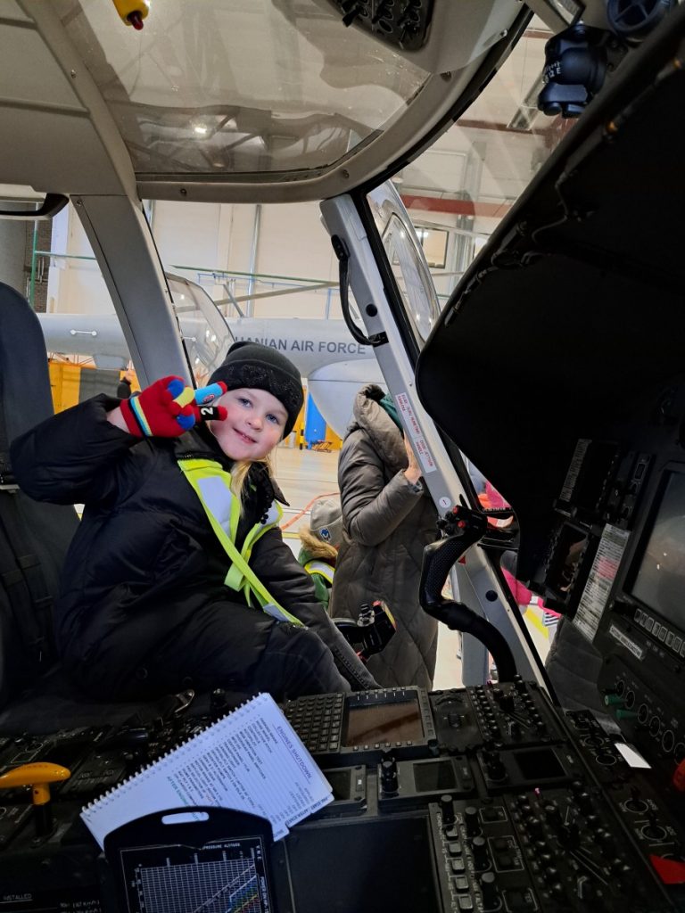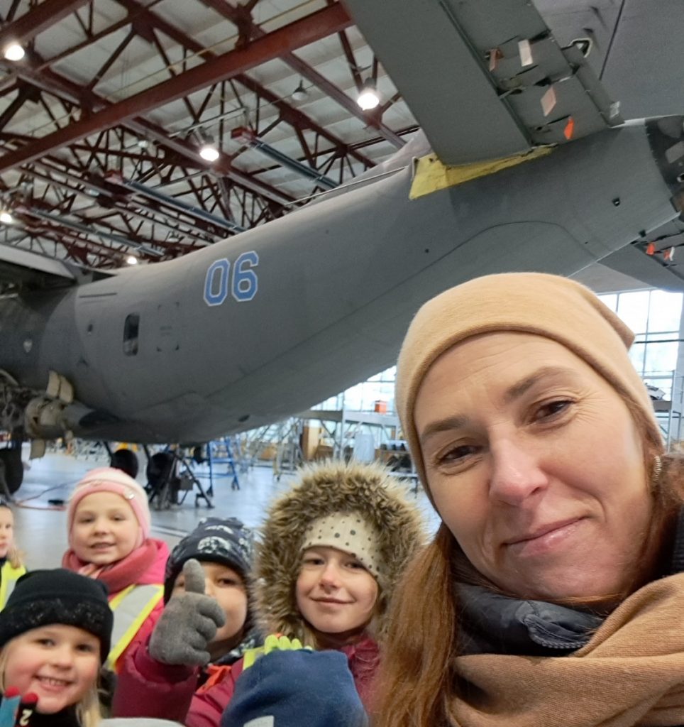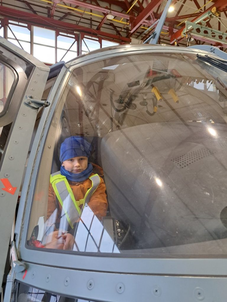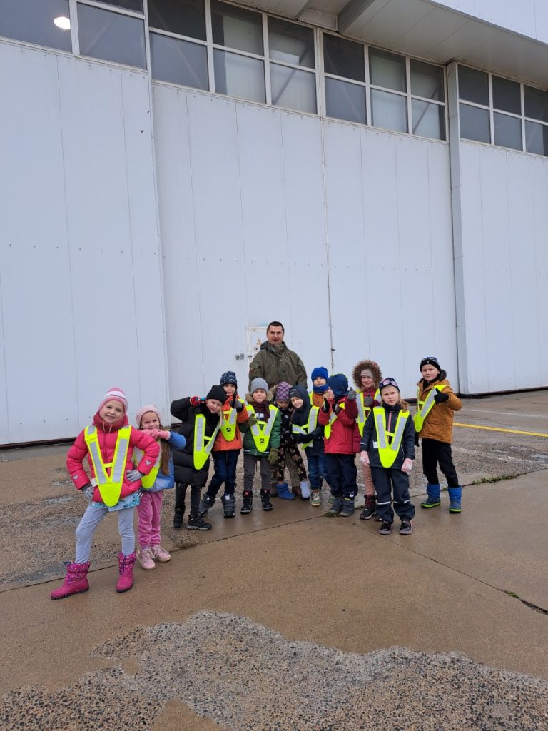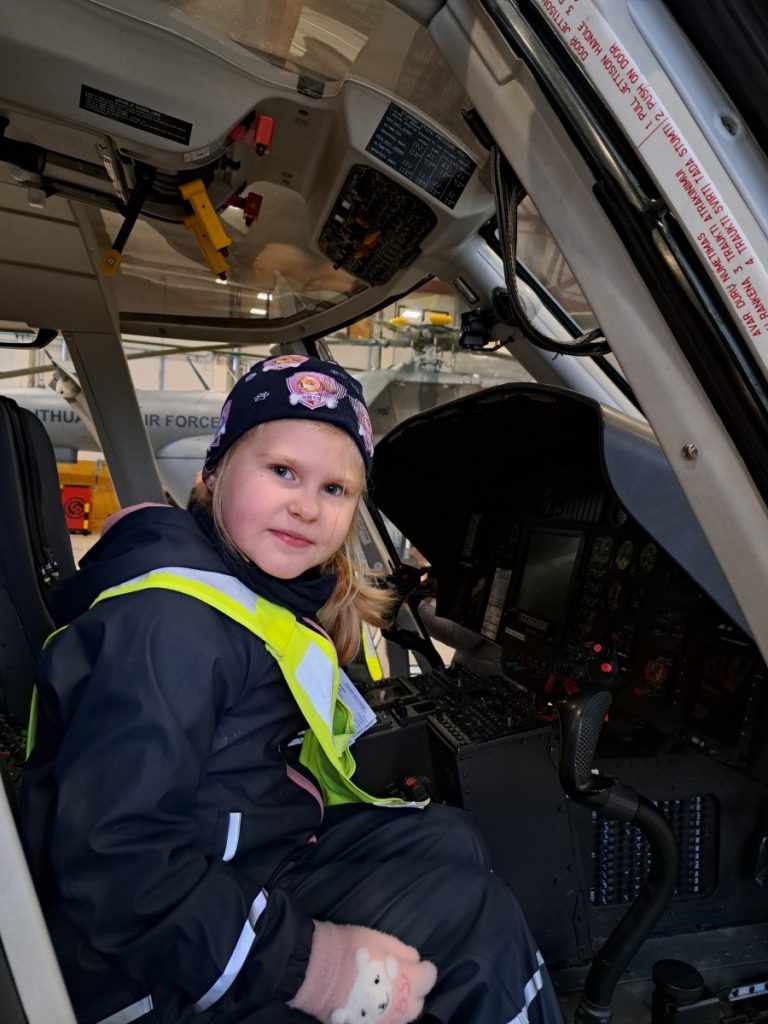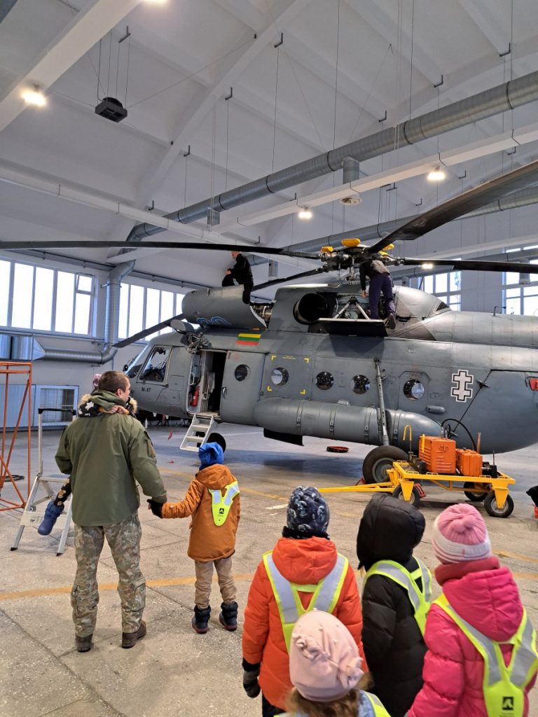 Nepabūgę pirmųjų snaigių ir šalto oro, priešmokyklinio ugdymo grupės „Bildukai“ ugdytiniai išsiruošė į Šiaulių Aviacijos bazę. Išvyką suorganizavo ugdytinio Arijaus tėtis. Jis kantriai ir išsamiai papasakojo vaikams apie lėktuvų rūšis, jų paskirtį, kada ir kur šių lėktuvų prireikia. „Bildukai“ ir patys pastebėjo, kad vieni lėktuvai turi sparnus, o sraigtasparniui reikalingi sraigtai. Džiugu, kad daug kam kilo klausimų apie piloto, karininko specialybę, galbūt po išvykos po kelių dešimtmečių Lietuvos padangė pasipildys naujais pilotais. Tačiau smagiausia buvo įlipti į daugelį iš šių transporto priemonių, pasėdėti piloto kėdėje, juk tik pačiam pabandžius ir palietus vairalazdę patirtis ir prisiminimai išlieka ilgam. Be galo smagu, kad tėveliai prisideda prie vaikų ugdymo, supažindindami su savo darboviete, profesija. Mažiesiems tai nepaprastai svarbu ir naudinga.