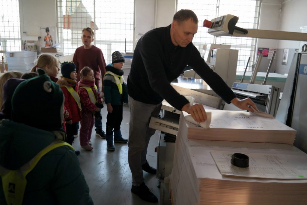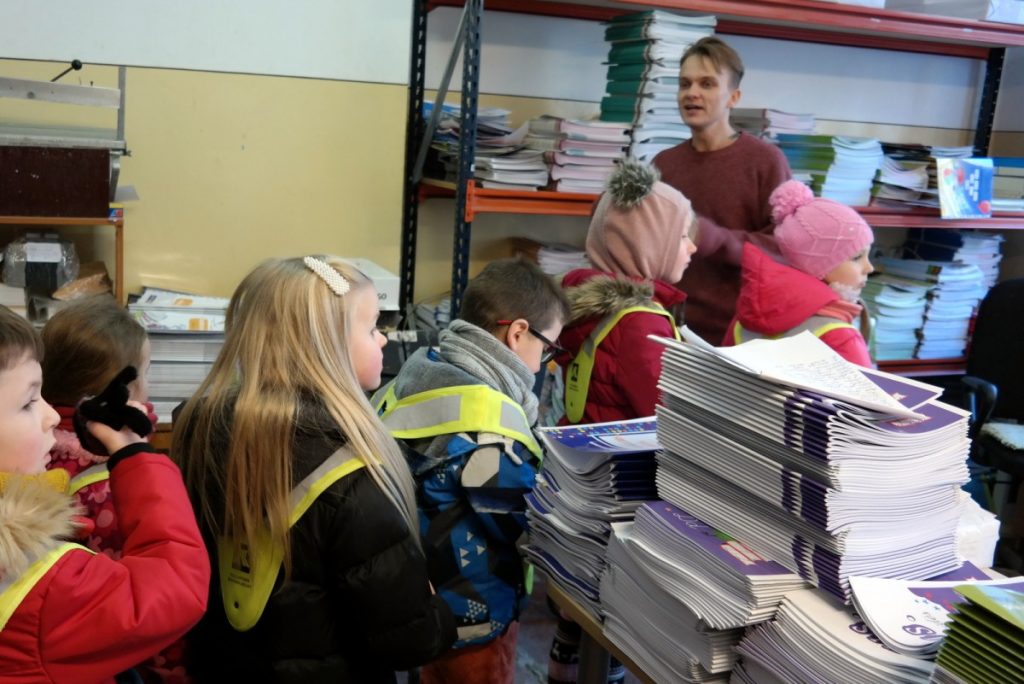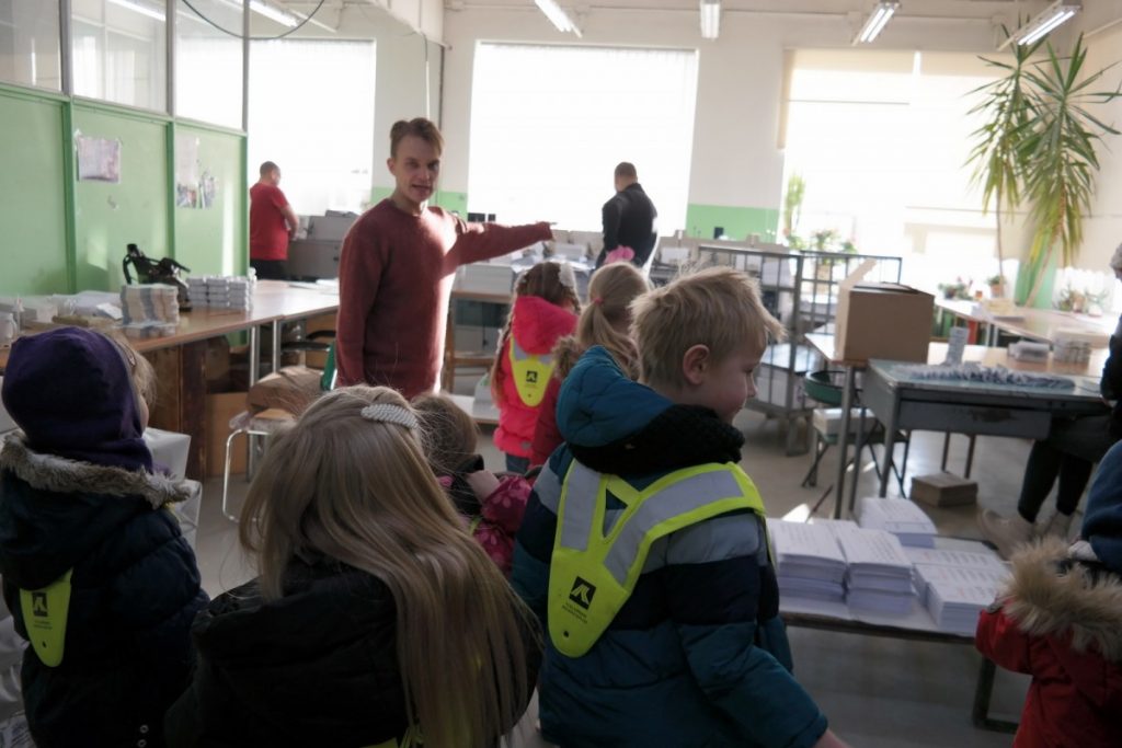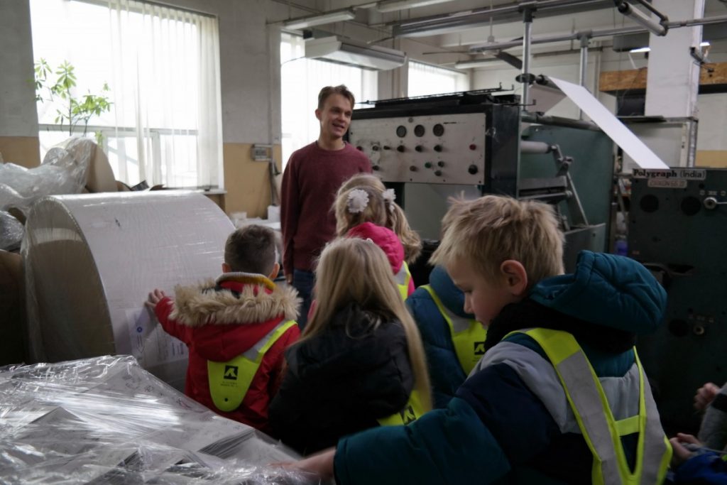 Priešmokyklinio ugdymo grupės „Bildukai“ vaikai kartu su mokytojomis apsilankė Šiaulių spaustuvėje „Saulės Titnagas“. Vaikai kartu su gidu Liudu ir Diletos tėčiu Gintu apžiūrėjo spaustuvę, susipažino su įrenginiais, pamatė, kaip pjaustomas popierius, spausdinamos knygos, kurioms atspausdinti naudojamos pagrindinės keturios spalvos: juoda, geltona, raudona, mėlyna, stebėjo, kaip gaminami lipdukai, kalendoriai, lankstomos pakuotės, įrišamos knygos. Nauja patirtis, geros emocijos, tėvų profesijos pristatymas – visada įdomu ir naudinga.
