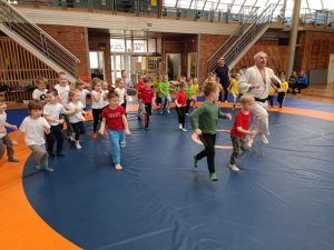 2025 m. balandžio 1 d. 9.30 val. „Svajoklių“, „Kodėlčiukų“, „Drugelių“ ir „Boružėlių“ grupių ugdytiniai (44 vaikai) kartu su grupių mokytojomis ir ikimokyklinio ugdymo mokytoja Aurelija keliavo į sporto klubą ,,Atžalynas“. Ten pasitiko treneris Stanislavas Kulikauskis. Vaikai susipažino su netradicine sporto salės aplinka (minkšta grindų danga – tatamiu), sporto šakų – dziudo ir sambo – ypatumais (apranga, spec. pratimais), naujais judriais žaidimais. Daug ir aktyviai judėjo, noriai atliko trenerio pasiūlytas sportines pratybas. Smagu matyti vaikus, kai jų veiduose – šypsenos, tikslo siekimas ir pagalba draugui, kuriam sunkiau atlikti užduotis. Patys aktyviausi dalyviai buvo apdovanoti medaliais ir saldžiomis dovanėlėmis. Džiugu