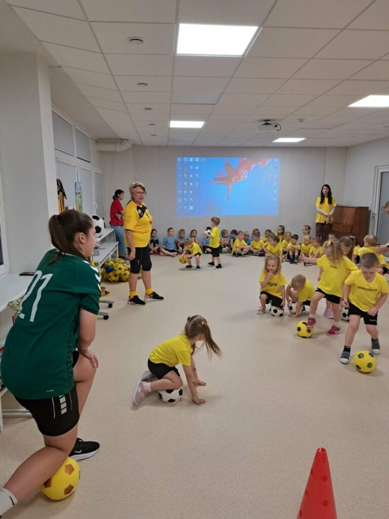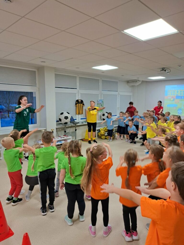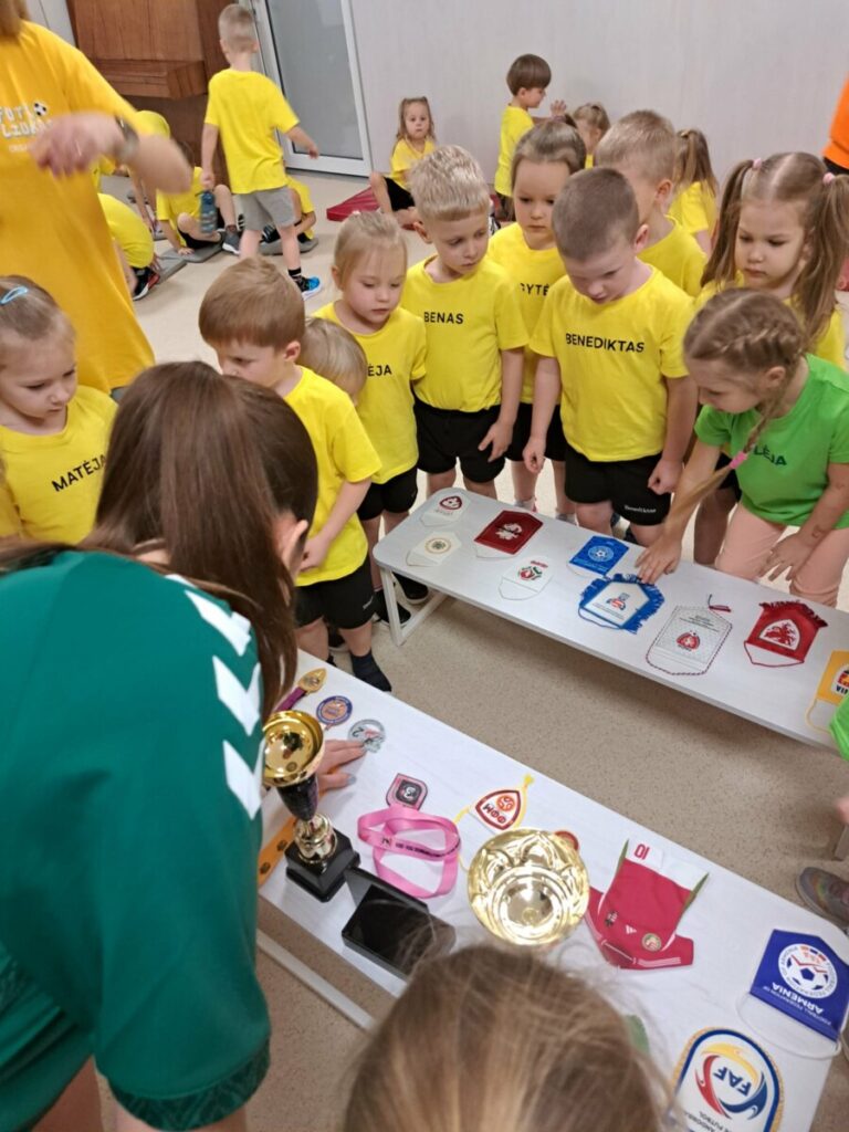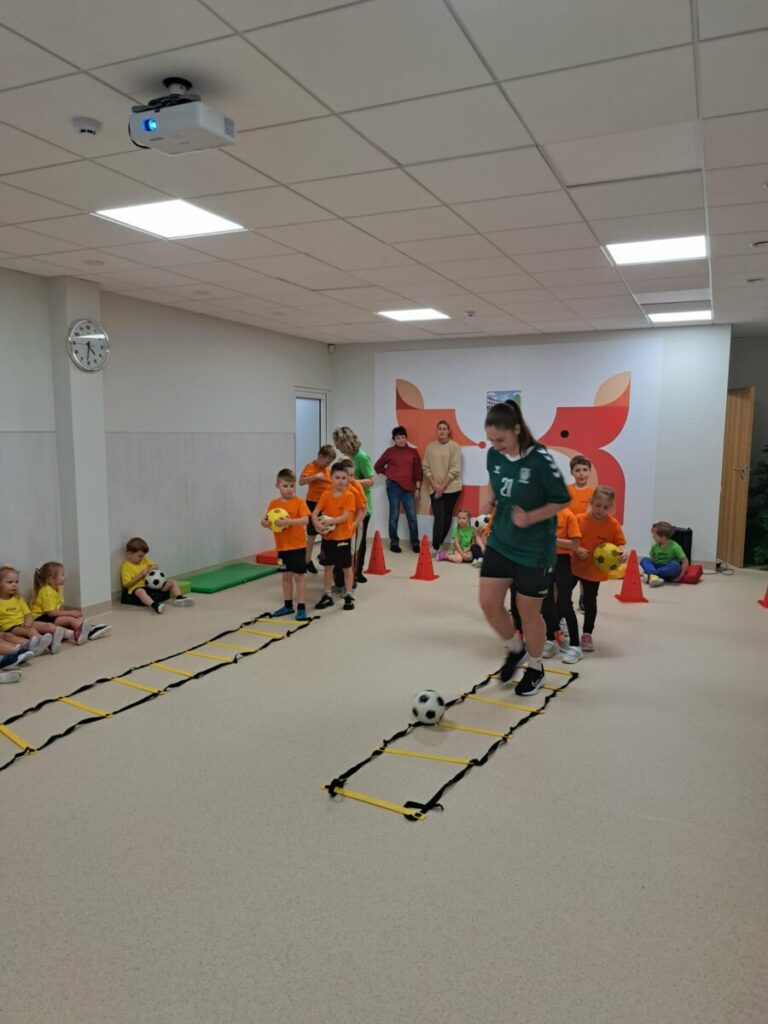Šiandien vyko ,,Futboliuko draugų susitikimas”. Susitiko  projekte dalyvaujančių grupių ugdytiniai              ( ,,Elniuko Ragiuko”, ,,Voveriuko Giliuko”, ,,Peliuko Sūriuko”, ,,Boružėlės Liputės”, Žiogiuko Žiniuko”). Renginyje apsilankė Šiaulių Futbolo akademijos auklėtinė, Lietuvos merginų U-19 rinktinės narė Jotvilė Šapaitė, kuri dalinosi savo sportine patirtimi, iškovotais trofėjais ir demonstravo tikrą futbolininkų mankštą ir gražius elementus. Kartu padėjo įveikti futboliuko pratybas, dalinosi gera nuotaika ir motyvavo vaikus pamilti futbolo sporto šaką. Projektas tik įsibėgėja – laukia dar daug gražios draugystės su Futboliuku”. Visi dalyviai gavo atminimo ženklelius, aktyvaus judesio valandėlę ir malonias bendravimo akimirkas.