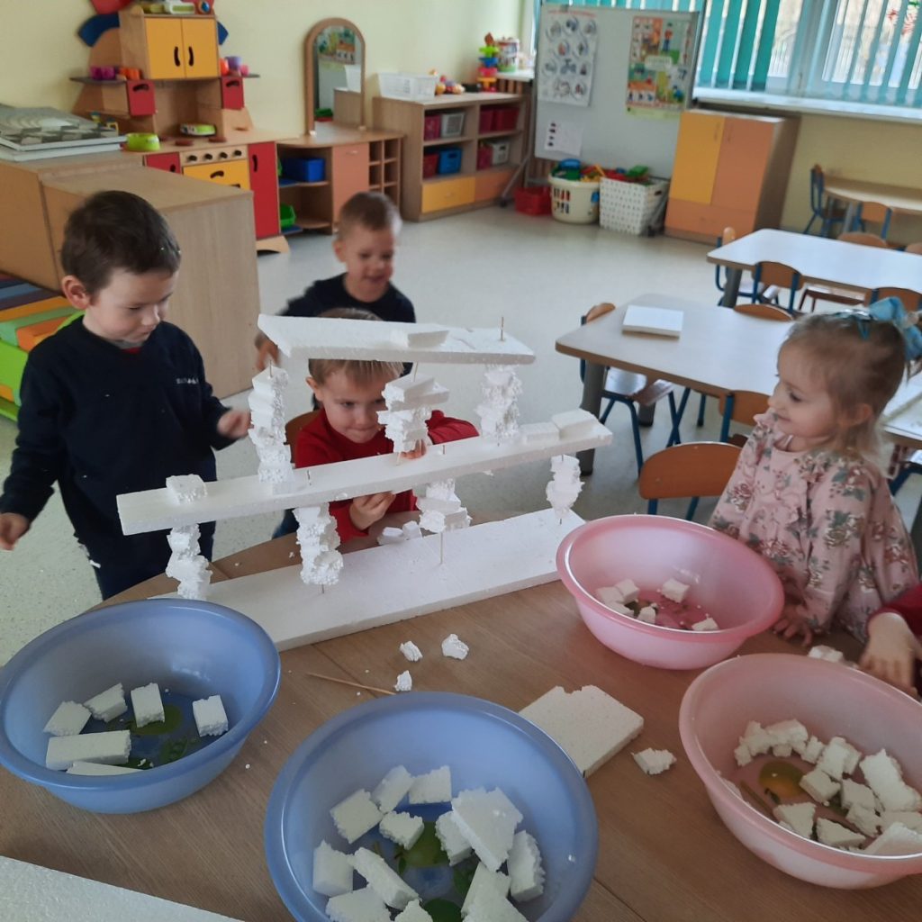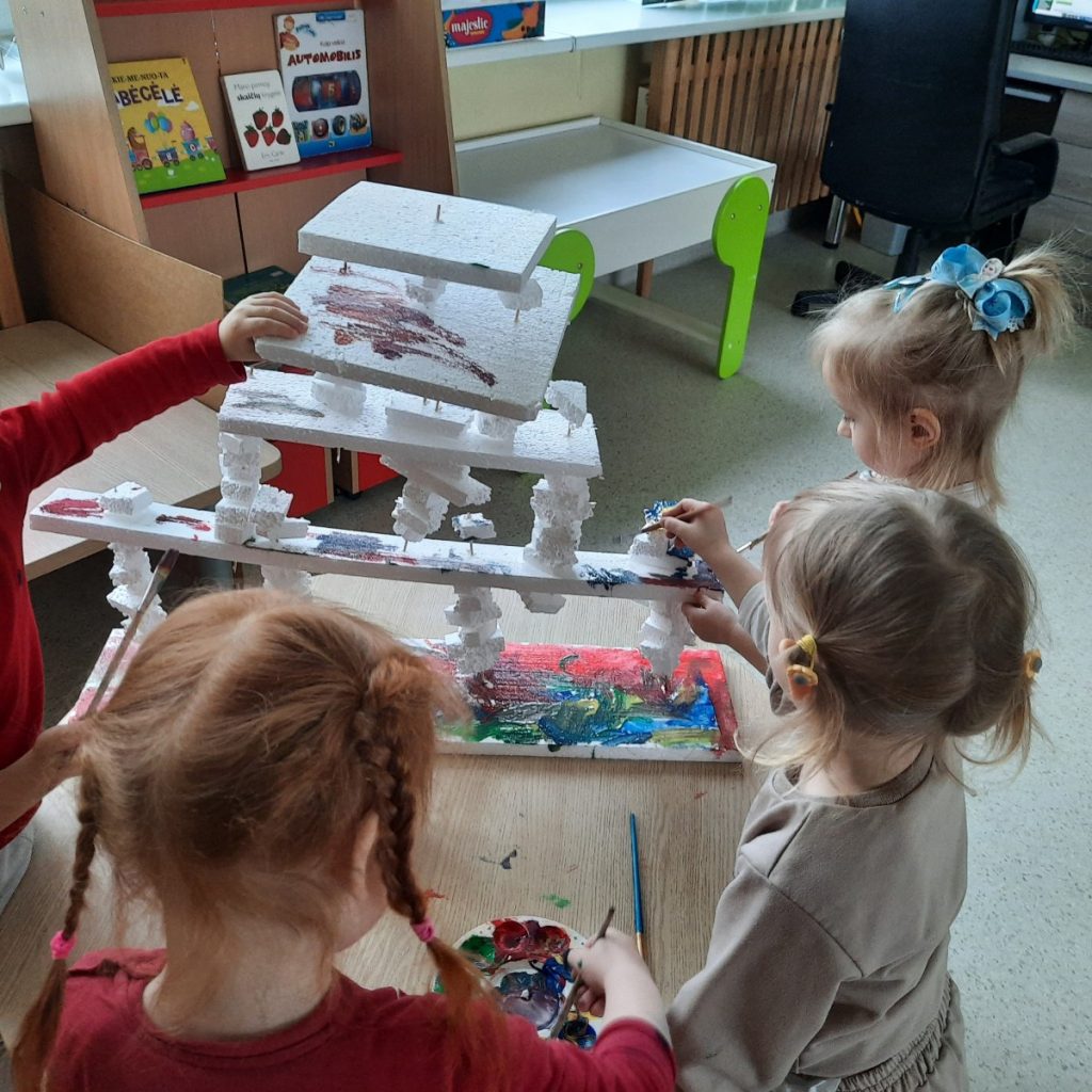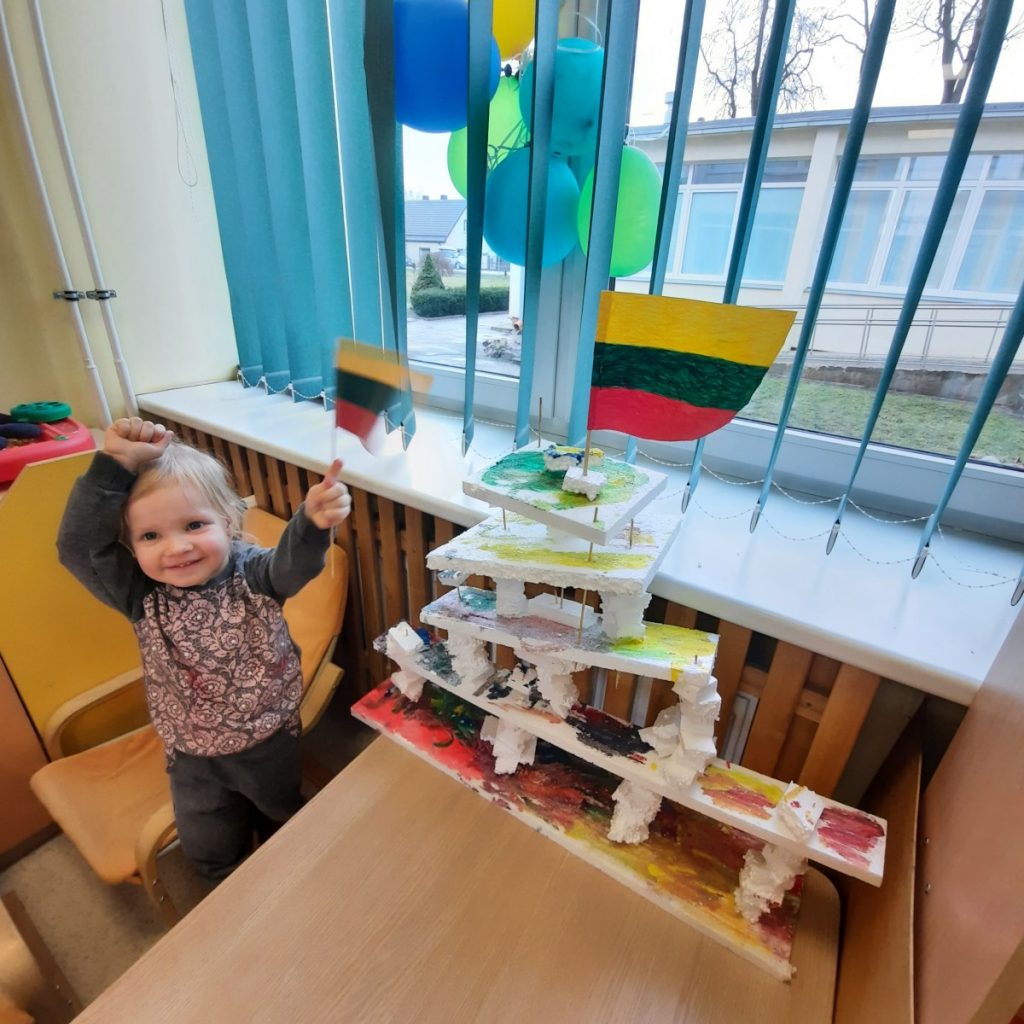 Minint artėjančią Lietuvos valstybės atkūrimo dieną grupės „Boružėlė” ugdytiniai sukonstravo pilį. Pirmiausia vaikai matavo detalių dydį: ilgas-trumpas, žemas-aukštas, platus-siauras. Po to prasidėjo „statybų darbas”. Smulkino putų lakštus, vėrė ant iešmelių, konstravo pilį, ją dažė ir papuošė Lietuvos trispalve. Vaikai džiaugėsi pačiu procesu bei savo sukurta pilimi.