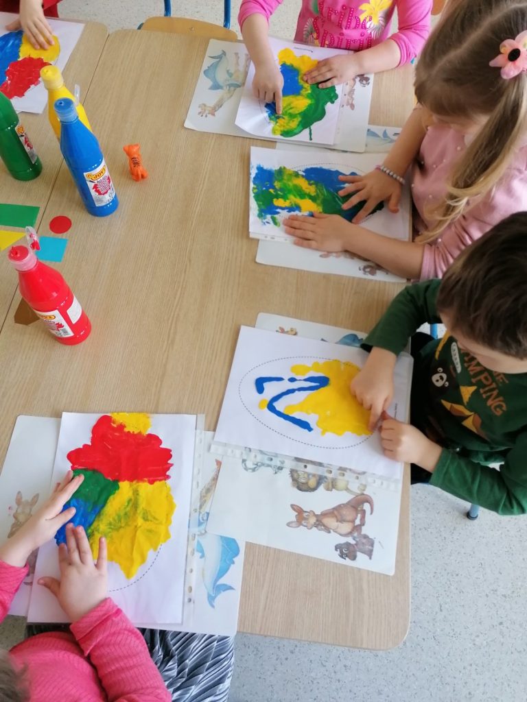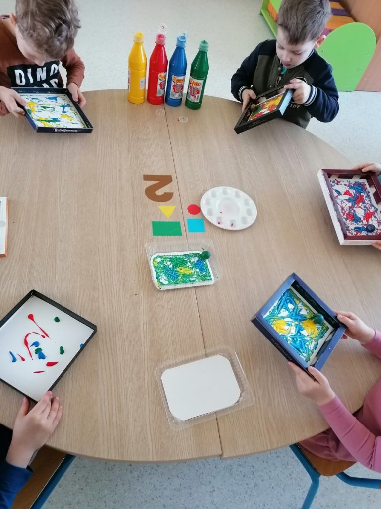 Daug džiugių emocijų patyrė sklaidydami pirštuku dažus. Maišydami spalvas išgavo naujų atspalvių. Išbandė stiklinio kamuoliuko kelionę dėžutėje, padengtoje guašo spalvotais taškeliais. Iš vienkartinių stiklinių, skalbinių segtukų, ledų pagaliukų konstravo įvairius statinius.