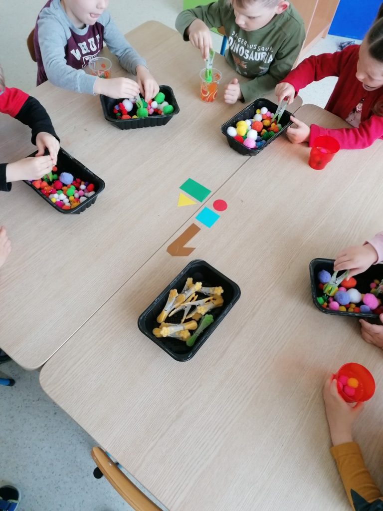 Labai smagi užduotis buvo „Kas greičiau surinks pomponus į indelį”. Eksperimentų, bandymų metu vaikai tobulino savo mąstymo įgūdžius, mokėsi problemų sprendimo, sutelkti dėmesį, lavino pagrindinius pojūčius, stiprino pasitikėjimo savimi jausmą.