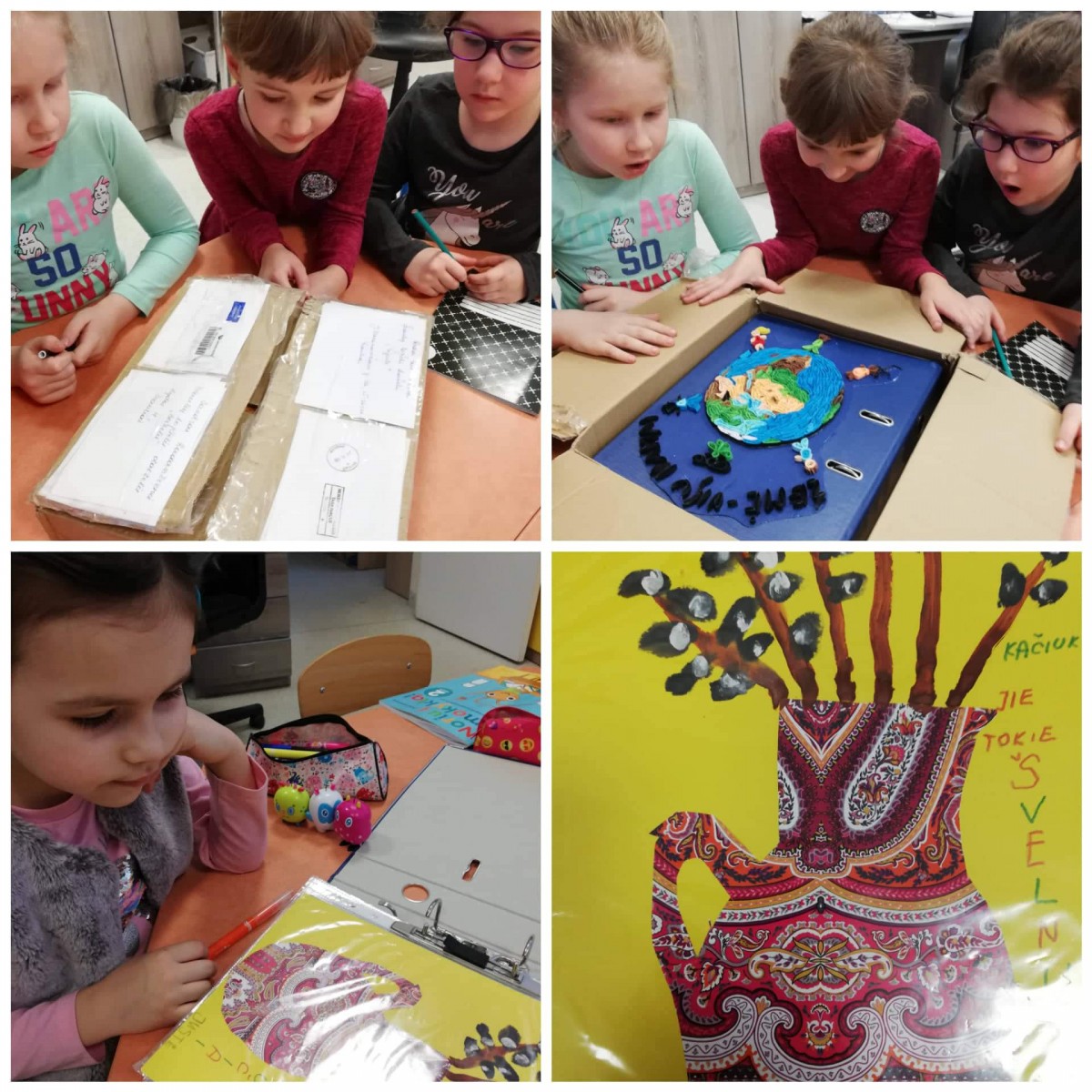 Nustebome gavę didžiulę knygą, kuri apkeliavo 25 miestus. Peržiūrėjome darbelius, skaitėme vaikų mintis apie žemę, įsegėme Justės darbelį. Knyga dabar keliaus į Gruzdžių darželį „Puriena“, o, pasiekusi visus dalyvius, sugrįš į Alytų.
