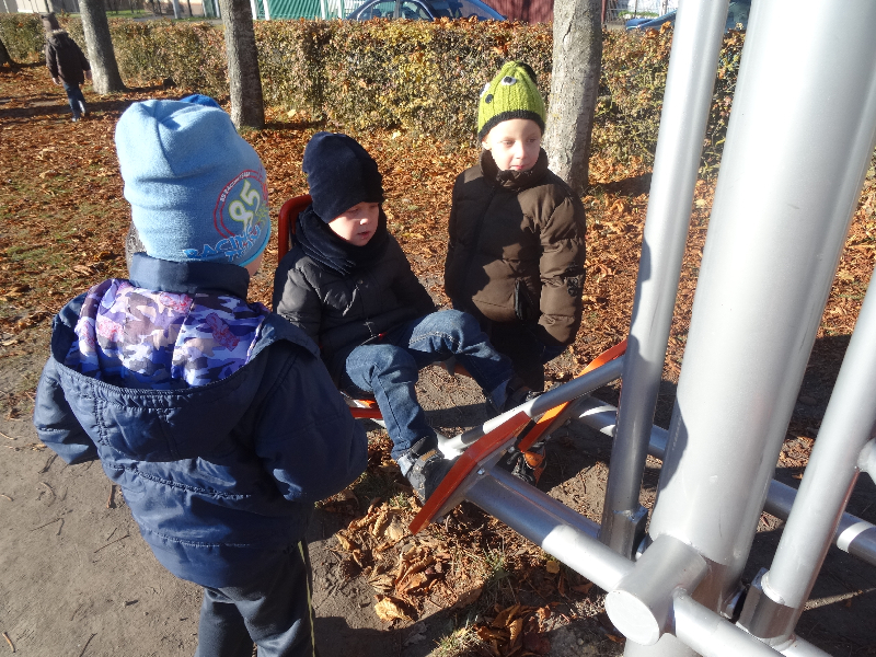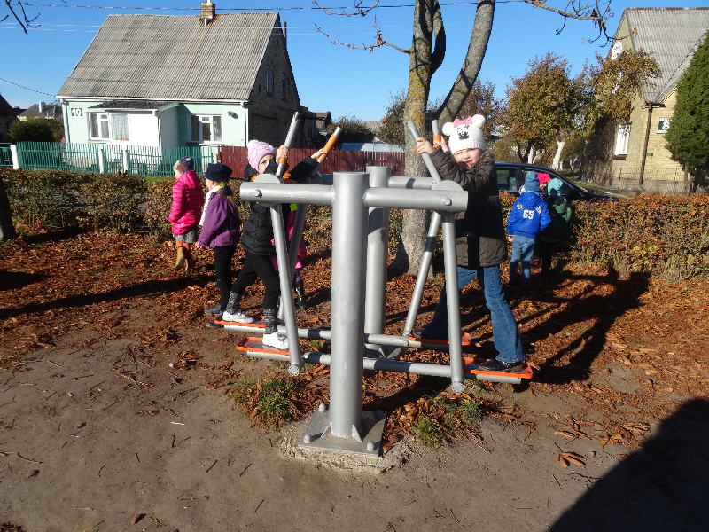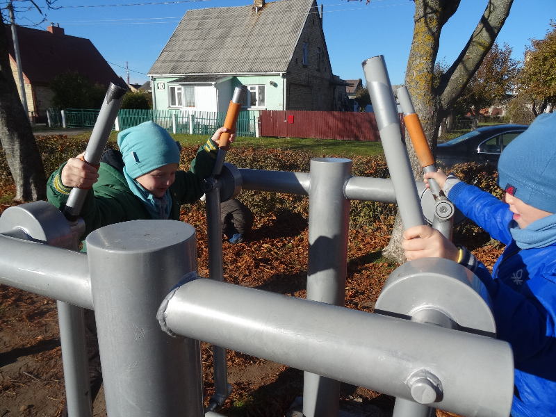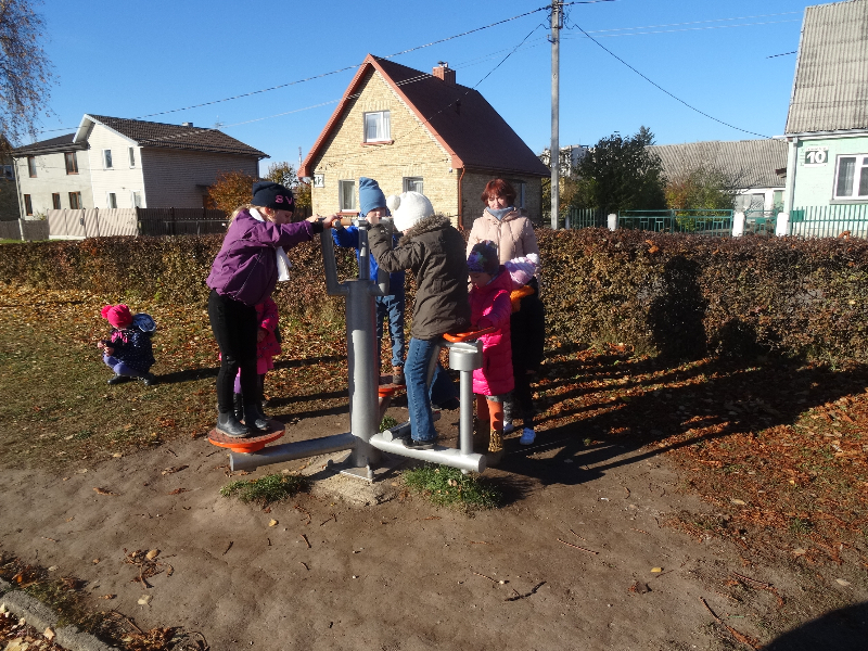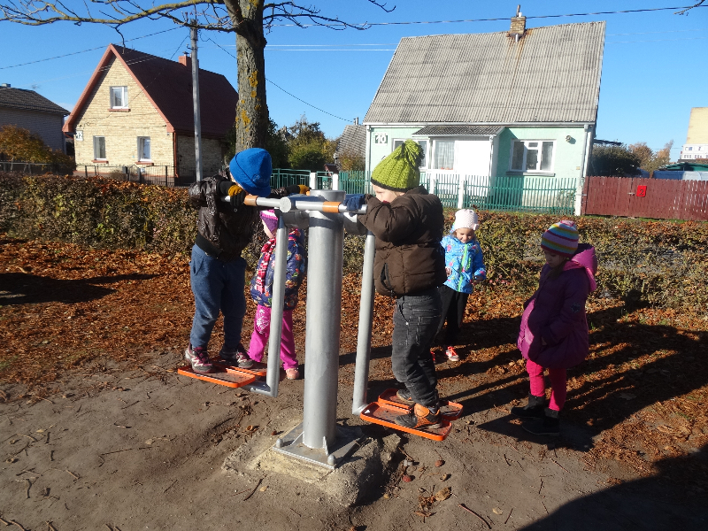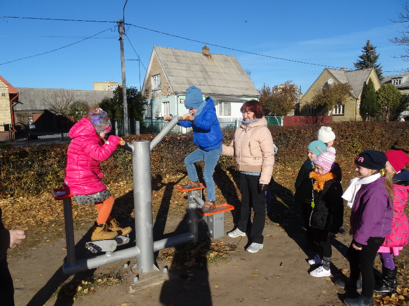 Įgyvendinant projektą „Vikruolių aikštelė” 2015 m. spalio 28 d. grupių „Drugelis” ir „Žiogelis” vaikai vyko sportuoti į Rasos progimnazijos treniruoklių kompleksą.