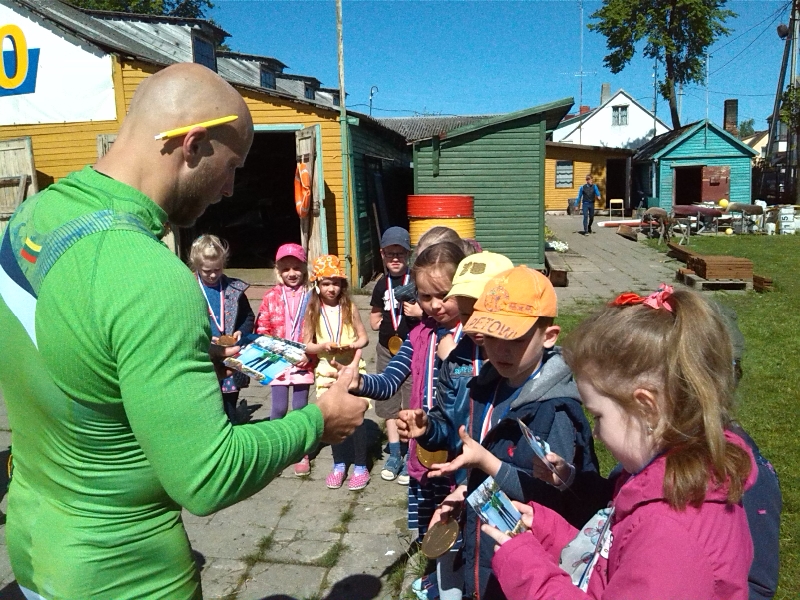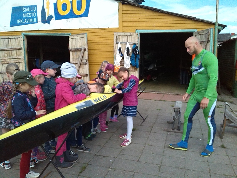 2017 m. gegužės 22 d. priešmokyklinio ugdymo grupės ugdytiniai vyko į Šiaulių irklavimo bazę. Ten olimpietis Aurimas Lankas supažindino vaikus su baidare, papasakojo ir parodė, kaip sportininkai treniruojasi ruošdamiesi varžyboms.