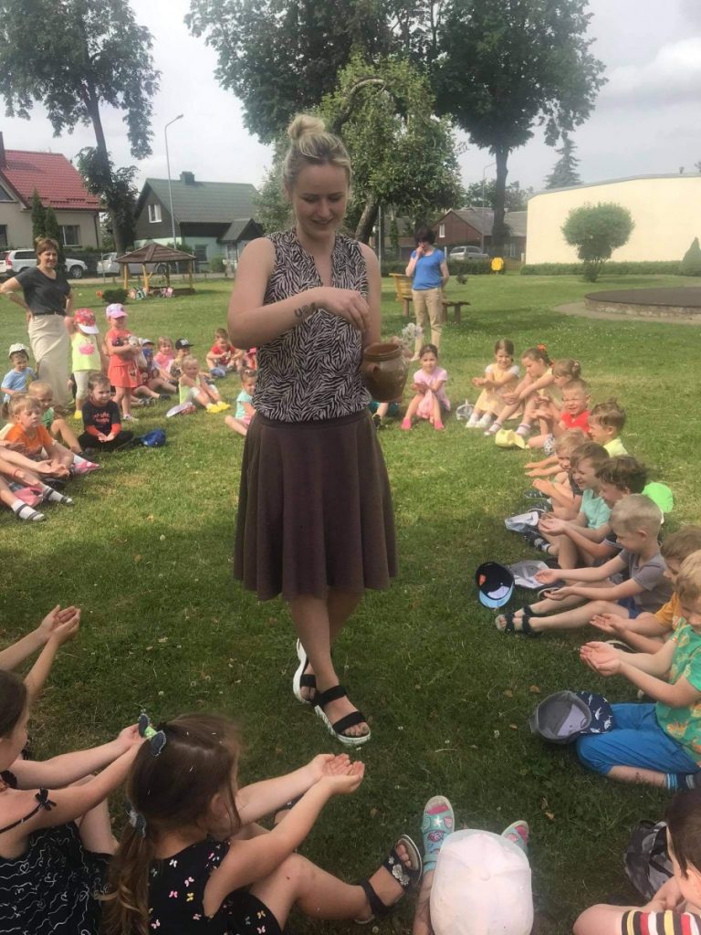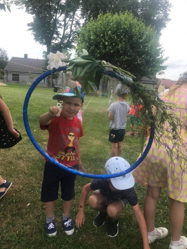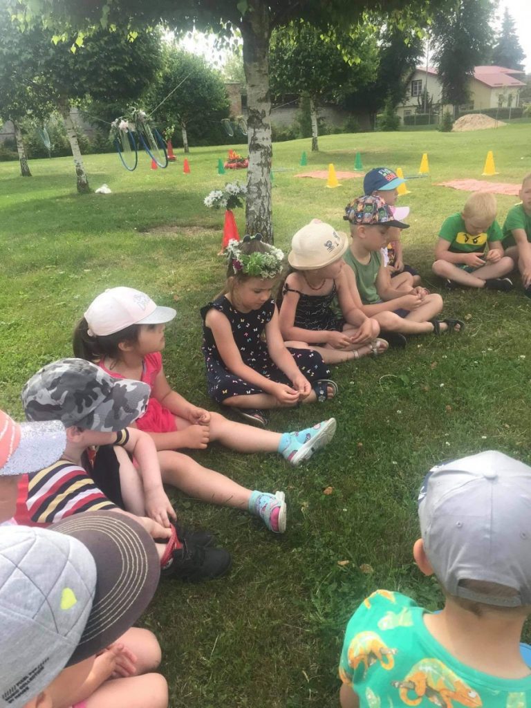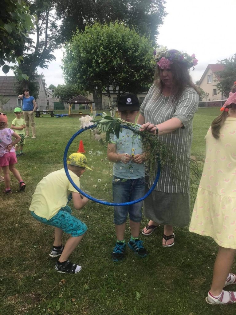 Vaikai susidomėję klausėsi pasakojimų apie vandens, ugnies reikšmę, žolelių rinkimą – kupoliavimą. Ieškodami paparčio žiedo ėjo „Stebuklingu taku“, prausėsi „Ryto rasa“, gamino „Žolynų vainikus“, suko smagius ratelius, šoko, dainavo dainas. Įstaigos edukacinėse erdvėse turėjo galimybę stebėti natūralios pievos augalus. Vaikai pasišildė ir šokinėjo per simbolinį „laužą“, dėkojo saulei už šilumą.