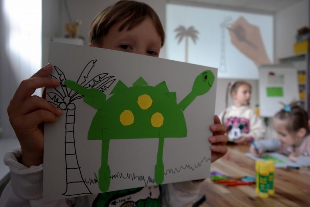 Priešmokyklinio ugdymo grupės „Bildukai” vaikai lankėsi Šiaulių techninės kūrybos centre ir dalyvavo edukacijoje „Kas riaumojo prieš milijonus metų?“. Vaikai žiūrėjo vaizdo medžiagą apie dinozaurus, jų įvairovę, gyvenimo būdą ir išnykimo priežastis, atliko užduotis darbo lapuose. Edukacinė veikla buvo grįsta patyriminio mokymosi principais, kai vaikai dalyvavo žaidime, kurio metu ieškojo dinozauro kūno dalių ir jas jungdami konstravo savo išgalvotus dinozaurus. Tokia struktūra padeda lavinti vaikų smalsumą, komandinius, bendravimo ir problemų sprendimo įgūdžius.