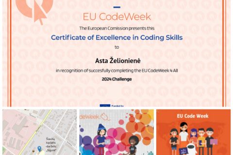 Mūsų įstaiga didžiuojasi gavusi ES Programavimo savaitės meistriškumo pažymėjimą už 2024 metus! Jis buvo suteiktas priešmokyklinio ugdymo mokytojai Asta Želionienei. Tai trečiasis mokytojos meistriškumo pažymėjimas, kuris suteikiamas už aktyvias veiklas programavimo savaitėje „Code Week 4 All“. ES Programavimo savaitė – tai puiki iniciatyva, skatinanti kūrybiškumą, problemų sprendimą ir bendradarbiavimą pasitelkiant programavimą ir technologijas. Džiaugiamės galėdami prisidėti prie […]