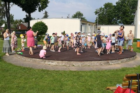 Karštą birželio 29 d. rytą meninio ugdymo mokytoja Nida visus pakvietė į Vandens šventę. Vaikai susirinko džiugiai nusiteikę ir pasiruošę ne tik šokti, bet ir truputėlį paišdykauti… Rytas neprailgo: vyko ir eksperimentai, ir žaidimai su vandeniu, bet labiausiai pralinksmino ir atgaivino vandens kovos su įvairiausiais purkštuvais…