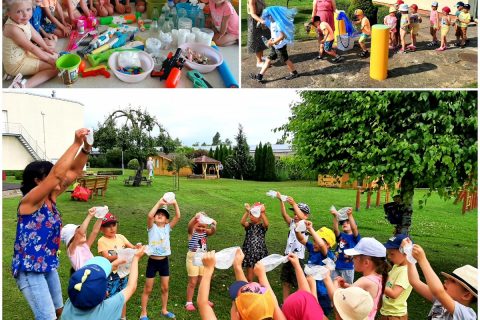 Vasara – pats tinkamiausias laikas žaidimams su vandeniu. Grupės „Drugelis” ugdytiniai kieme išbandė daug įvairiausių veiklų: pilstė vandenį į maišelius, balionus, indelius, atliko matavimo, mėtymo veiksmus, „gydė” gyvūnus, vandens purkštuvais laistė augalus ir draugus, draugiškai lenktyniavo. Veiklą organizavo auklėtoja Asta Liaudanskienė ir padėjėja Miglė Ašmontaitė.