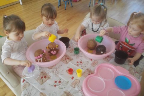 Mažieji grupės tyrinėtojai eksperimentavo liejant spalvas, lavino regimąjį suvokimą ir miklino savo pirštukus. Vaikai dėjo trafaretą į įmautę, rinkosi patinkančios spalvos guašą, stumdė dažus ir trafaretą pirštukais, išgaudami spalvotus potėpius. Dienos atradimu tapo plastiko kibirėliai. Vaikai jau žino, kad į kibirėlį galima pilti vandenuką, juo laistyti augalus. Šį kartą išbandėme matavimo galimybes. Vaikai dėjo į […]