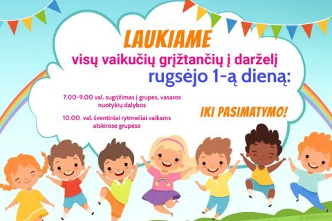 Dėmesio! Informuojame, kad vasaros laikotarpiu nuo 2023 m. birželio 1 d. iki 2023 m. liepos 31 d. prailginta grupė lopšelyje-darželyje „Sigutė“ dirbs nuo 17.30 iki 18.00 val. Administracija
