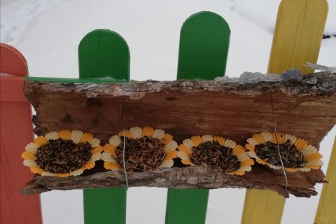 Lopšelio-darželio grupės „Žiogelis” vaikai rūpinasi paukšteliais: paruošė skanėstų iš grūdelių, kokosų aliejaus, kantriai lauks sparnuočių.