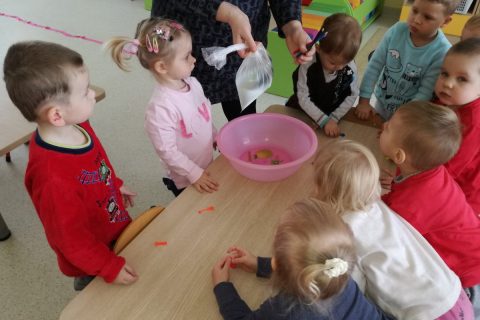 Grupės „Boružėlės“ vaikai, kartu su auklėtoja Janina, tyrinėjo spalvotų pieštukų galimybes. Atliko eksperimentą: pripylė maišelį vandens ir užrišo. Pieštukais vėrė per maišelį su vandeniu. Stebėjo: kol pieštukas yra pervėręs maišelį, vanduo nebėga, vos tik ištraukė pieštukus – visas vanduo iš maišelio išbėgo. Pabandykite ir Jūs!