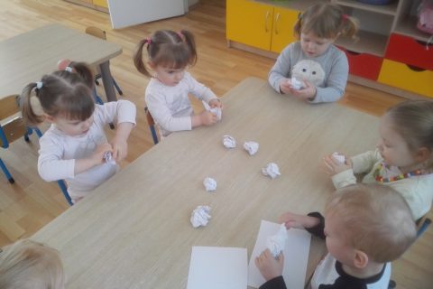 „Boružėlių“ grupės vaikai, kartu su auklėtoja Janina Šulskiene, vartė senus reklaminius žurnalus, tyrinėjo, apžiūrėjo, kas juose pavaizduota, parašyta. Vaikai išbandė pirštukų galimybes: plėšė, glamžė popierių, suko kamuoliukus. Net nepastebėjo, kaip popieriaus skiautelės pasklido ant žemės. Tuomet vaikai sugalvojo „padaryti“ popierinius angelus. Po veiklos atvyko „tvarkos“ nykštukas. Visi drauge padirbėjo. Buvome laimingi!