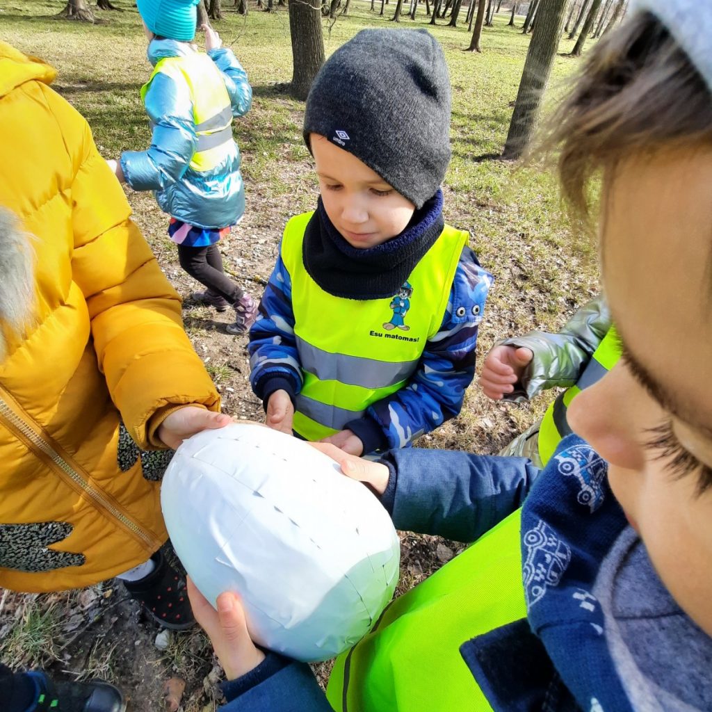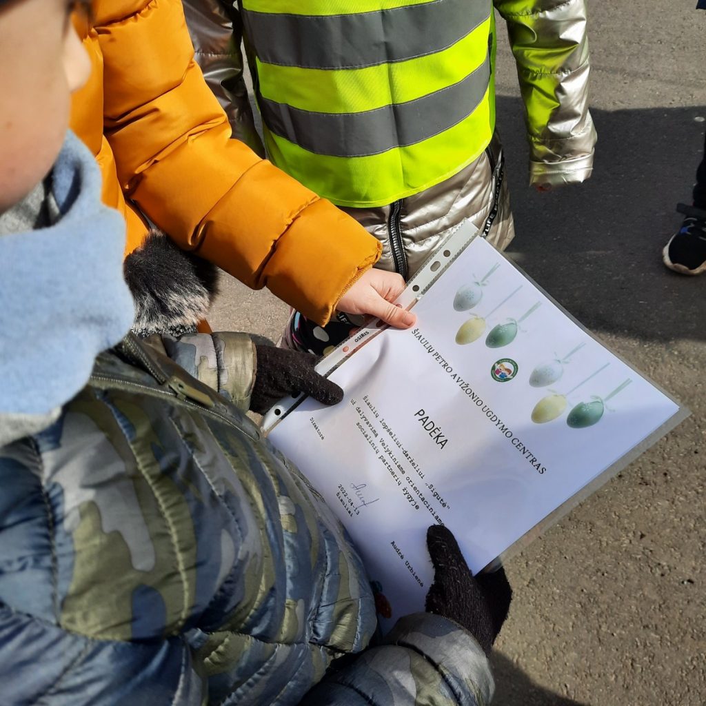 Parke susirinko Šiaulių Petro Avižonio ugdymo centro, lopšelių-darželių „Coliukė“, ,,Gluosnis“, ,,Žilvitis“ bei mūsų lopšelio-darželio ugdytiniai. Visų grupių komandos prisistatė trumpu šūkiu. Iš žygių kapitono kiekviena komanda gavo po QR kodą su paslėpta nuotrauka – parke turėjo surasti dvi analogiškas vietas, parko planą su galimomis paieškos vietomis. Vaikai džiaugsmingai nusitekę ieškojo nurodytų vietų. Greitai orientavosi ir rado velykinį kiaušinį bei saulytę, kurią turėjo sudėlioti iš šakelių. Ugdytiniai buvo apdovanoti knygelėmis bei padėka. Žygį lydėjo geras oras bei puiki nuotaika.