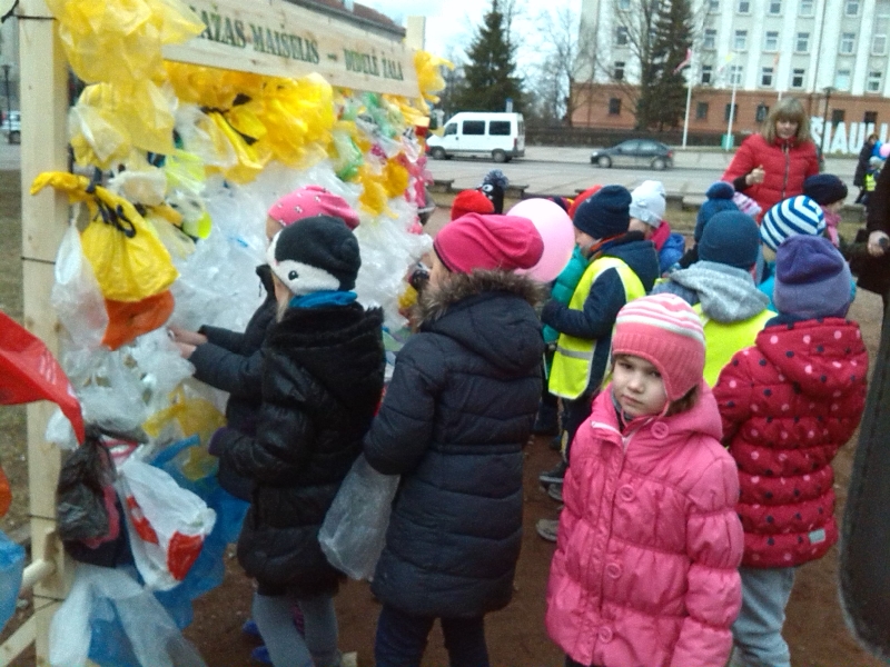 Priešmokyklinio ugdymo grupės „Žiogelis” ugdytiniai dalyvavo Šiaulių miesto Prisikėlimo aikštėje organizuotoje pilietinėje-meninėje akcijoje „Mažas maišelis – didelė žala” ir šoko „2017 šokį Žemei”.