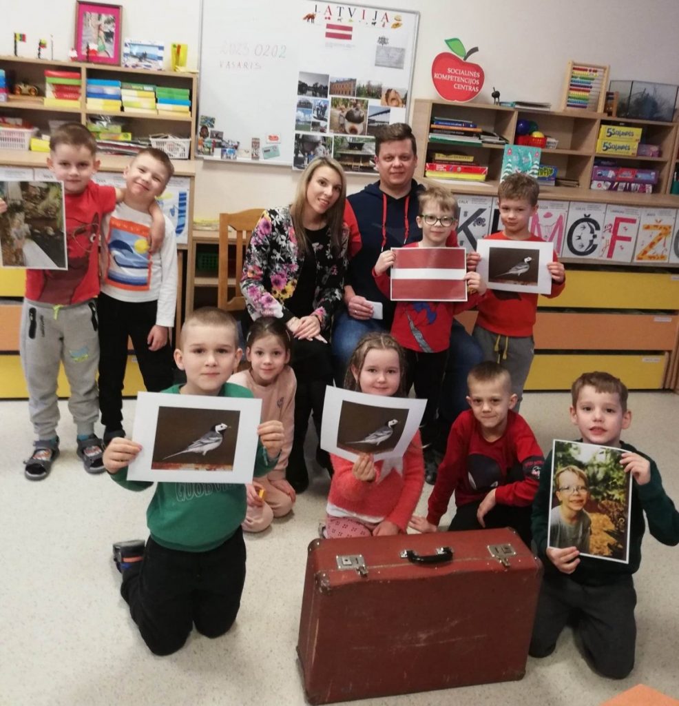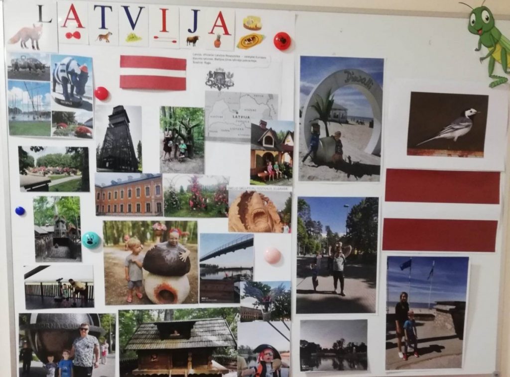 Projektu susidomėjo grupės tėveliai. Arono šeima pristatė Lietuvos kaimynę Latviją. Jo prosenelis – latvis. Pavardė – Gravinš. Vaikai sužinojo, kad latviškai darželis – bernu darzas, mergaitė – meitene, berniukas – zens. Latvių nacionalinis paukštis – kielė. Tėveliai parodė nuotraukų, pavaišino saldainiais „Karvutė“. Susitikimo pabaigoje išklausėme latvių himną.