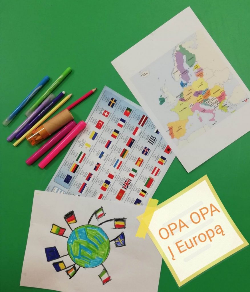 Grupės „Žiogelis“ vaikai dalyvauja respublikiniame virtualiame ikimokyklinio ir priešmokyklinio ugdymo įstaigų vaikų, tėvų ir pedagogų projekte „Opa opa į Europą“.