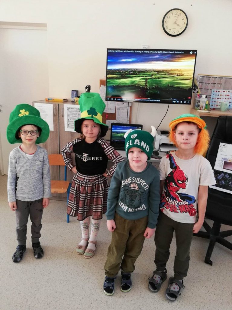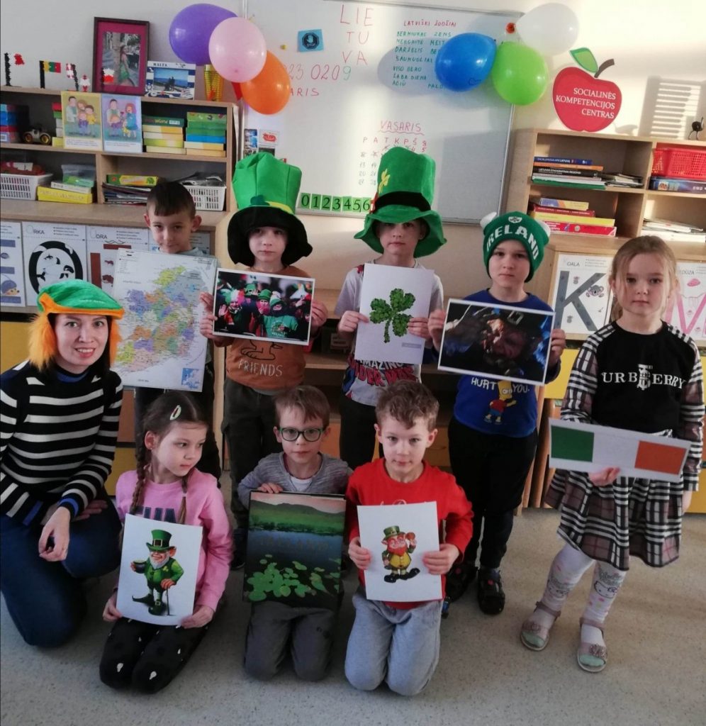 Projektui „Opa opa į Europą“ įsibėgėjant, Dovydo mama pristatė Europos šalį Airiją. Vaikai išgirdo eilėraštį airių kalba, pamatė airišką šokį, sužinojo kaip švenčiama Šv. Patriko šventė, pasimatavo įspūdingas kepures. Vaikus sudomino pasakojimas apie Leprekoną (gnomą), kuris slepia lobį vaivorykštės gale. Dovydo mamai pavyko išvilioti lobį. Po pinigėlį padovanojo visiems vaikams. Gaublyje greitai rado Airiją ir sostinę Dubliną. Tėvų apsilankymas grupėje suteikia žinių ir džiugių emocijų.