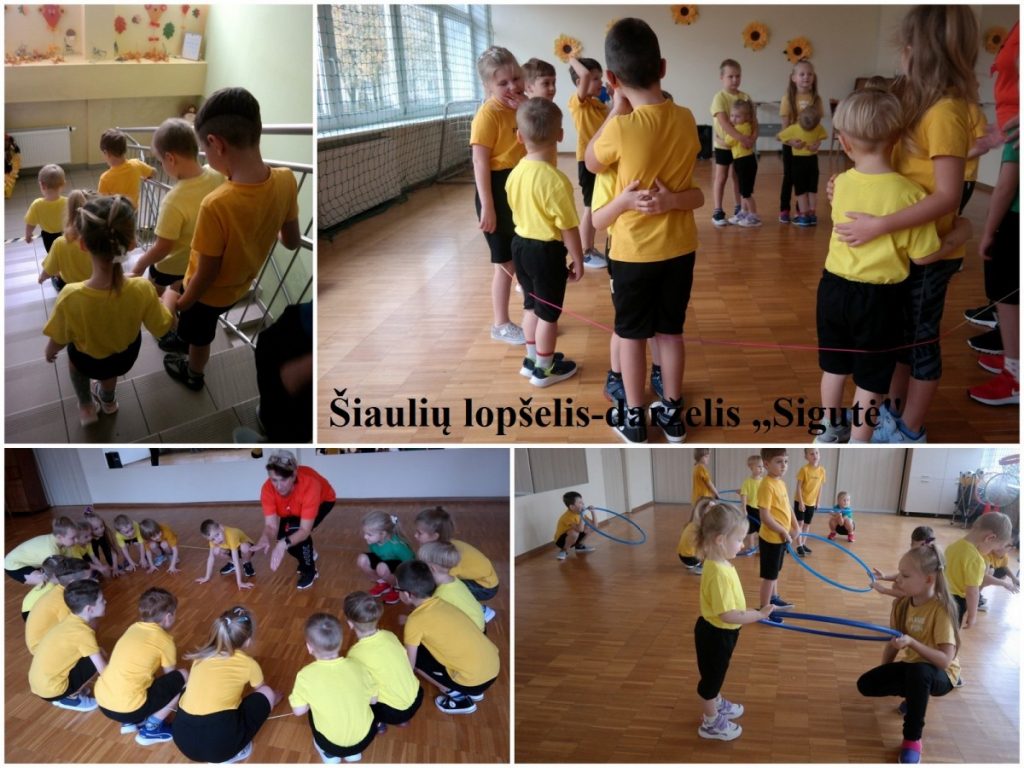 Lapkričio 10 dieną Šiaulių lopšelio-darželio „Sigutė“ ,,Bildukų“ (priešmokyklinukai) ir ,,Kodėlčiukų“ (3–4 m.) grupių vaikai dalyvavo RIUKKP-os projekto sportiniame renginyje. Vyresnieji draugai nuo pat grupės durų prisiėmė atsakomybę už mažuosius. Kokios emocijos „skraidė“ aplink! Kokia puiki galimybė patirti atsakomybės „naštą“ priešmokyklinukams, o mažiukams – patirti džiaugsmą ir pasitikėjimą savo jėgomis, įveikiant sportines užduotis! Žodžiai „Mažasis draugas“, „Tolerancija“, „Aš galiu tau padėti“ įgavo prasmę praktinėje veikloje. Laimingos šypsenos puošė visų dalyvių veidus.