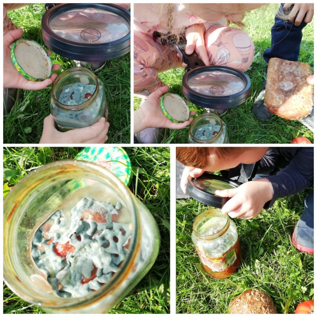 Grybai būna valgomi, nuodingi, o kas čia? Feee. Pelėsis. Vaikai nustebo sužinoję, kad pelėsis yra siūliniai grybai. Kad jie augtų reikalinga šiluma, drėgmė, maisto medžiagos. Smalsu buvo užauginti didelę grybų koloniją.
