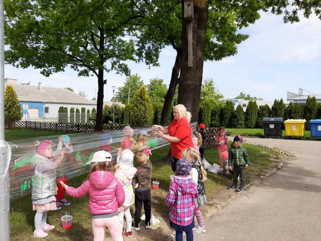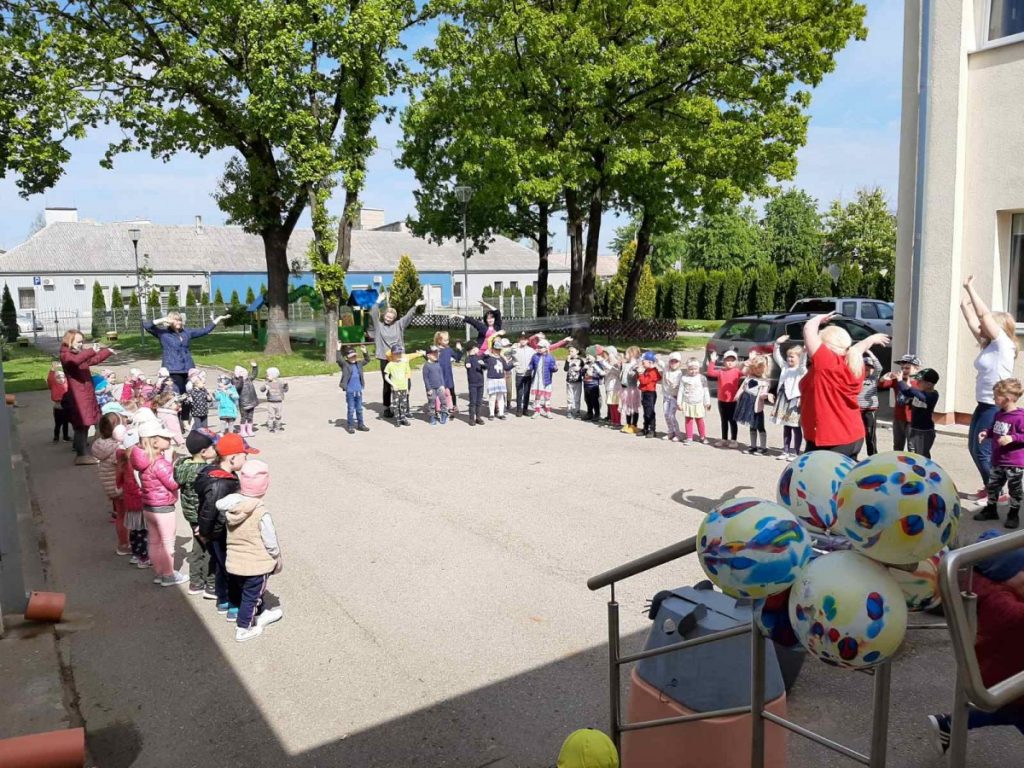 2021 m. birželio 1 d. minint Tarptautinę vaikų ginimo dieną, darželio kieme, pasitikome nerūpestingą vasarą. Auklėtoja Janina pakvietė visus linksmam ir aktyviam sveikatos rytmečiui „Pajudėkime kartu“. Visi drauge linksmai ir energingai judėjome. Staigmeną parengė grupės „Žiogelis“ ugdytiniai. Jie kartu su auklėtoja Žavinta visus pakvietė šokti pagal grupės „The Roop“ eurovizinę dainą. Vėliau vaikai, puikiai nusiteikę, piešė guašu ant tarp medžių ištemptos plėvelės.