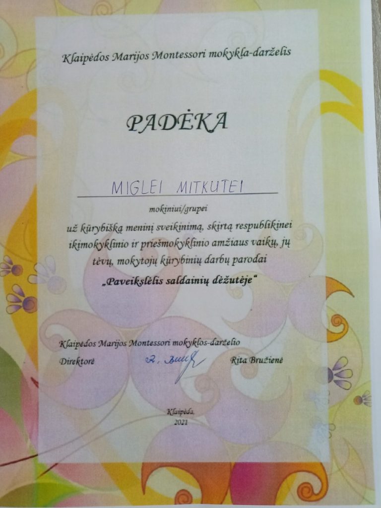 Klaipėdos Marijos Montessori mokykla-darželis 2021 m. lapkričio 16 d. – 2021 m. gruodžio 10 d. organizavo respublikinę ikimokyklinio ugdymo įstaigų vaikų, tėvų, mokytojų kūrybinių darbų parodą „Paveikslėlis saldainių dėžutėje“.
