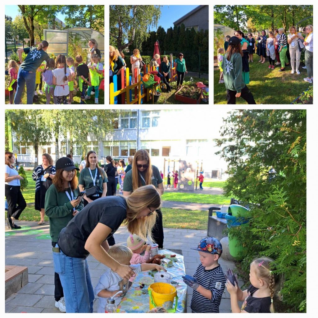 Vienas iš projekte mokytojams keliamų tikslų – susipažinti su partnerių lauko erdvėmis ir įranga. Mūsų įstaiga labai džiaugėsi galėdama pristatyti pačių vaikų prižiūrimą šiltnamį, meteorologinę stotelę, lauko „Picų kepyklėlę“. Visose darželio erdvėse mokytojos su ugdytiniais žaidė žaidimus, eksperimentavo panaudojant gamtoje turimas medžiagas, „nuėmė“ derlių iš šiltnamio, kepė „picas“ lauko kepyklėlėje. Mokytojai apžiūrėjo ir darželio grupes. Labai smagu, kad išgirsti, šilti žodžiai, komplimentai privertė didžiuotis puikiomis erdvėmis bei kompetetingais įstaigos mokytojais.
