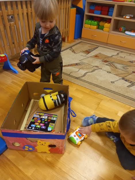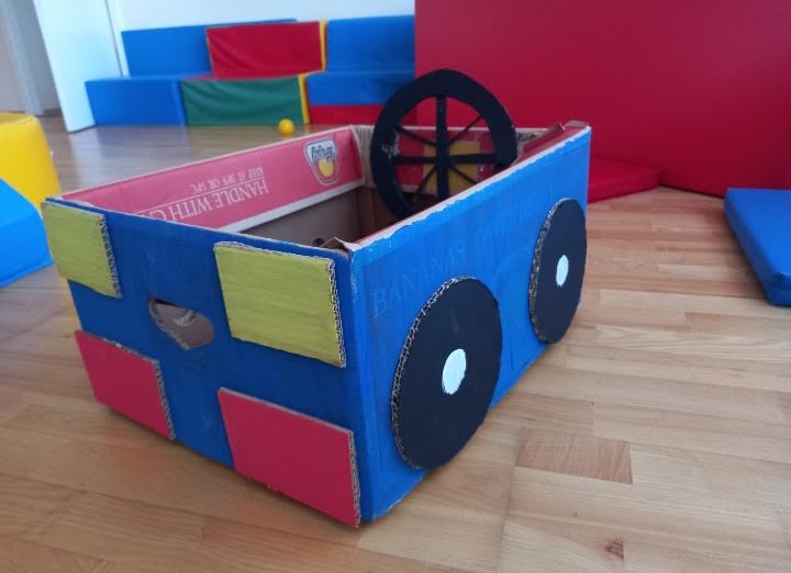Projekto pabaigoje, bendradarbiaujant su tėvais, kurie parūpino tuščių dėžių, buvo sukurtas iš antrinių žaliavų žaislas „Mašina“.