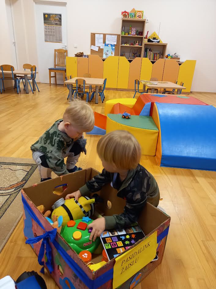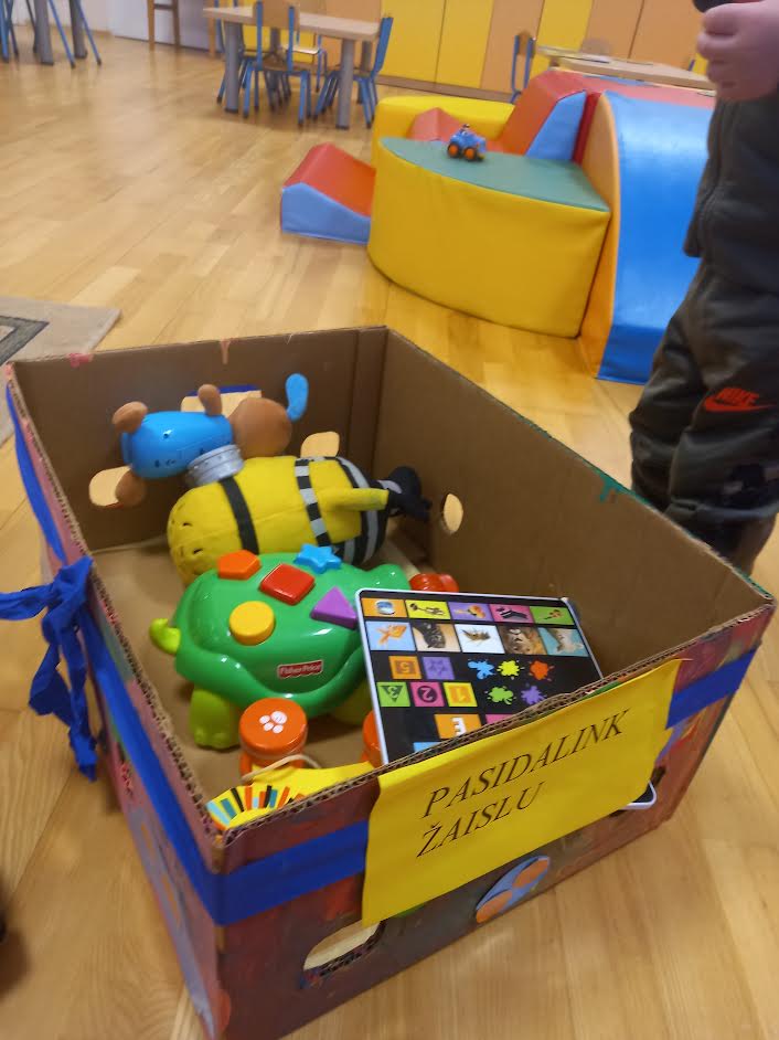 Projekto metu vaikai mokėsi dalintis ir kartu žaisti savo mėgstamais, iš namų atsineštais žaislais su draugais. Už kiekvieną atsineštą žaislą buvo apdovanojami lipdukais.